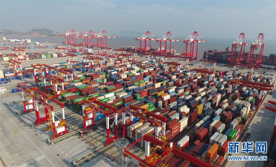 這是上海洋山深水港四期自動化碼頭(7月25日無人機拍攝)。 位于杭州灣口外的上海洋山深水港區(qū),由大、小洋山等數(shù)十個島嶼組成,是中國首個在海島建設(shè)的港口。洋山港西北距上海市南匯蘆潮港約32公里,南至寧波北侖港約90公里,距國際航線僅45海里,是距上海最近的深水良港。 得益于洋山深水港的規(guī)劃建設(shè)和多年發(fā)展,目前上海港與全球214個國家和地區(qū)的500多個港口建立了集裝箱貨物貿(mào)易往來,國際班輪航線遍及全球各主要航區(qū)。2017年,上海港集裝箱吞吐量首次突破4000萬標準箱,完成4023.3萬標準箱,同比增長8.3%,均創(chuàng)歷史最高水平。 新華社記者 丁汀攝