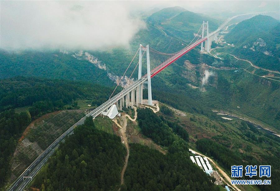 貴陽至甕安高速公路上的清水河大橋(8月27日無人機拍攝)。該橋主跨1130米,是世界上最大單跨板桁結(jié)合加勁梁懸索橋。新華社記者劉續(xù)攝