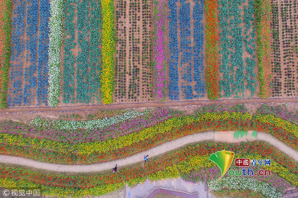 2018年10月14日,江蘇南京,江寧區(qū)谷里街道徐家院村的50萬株百日菊競(jìng)相綻放,大紅、黃色、紫色……遠(yuǎn)遠(yuǎn)望去仿佛是田野間鋪上一層“五彩地毯”, 成了金秋里一道花宴盛景,吸引不少游人徜徉其中。圖片作者:方東旭/視覺中國(guó)