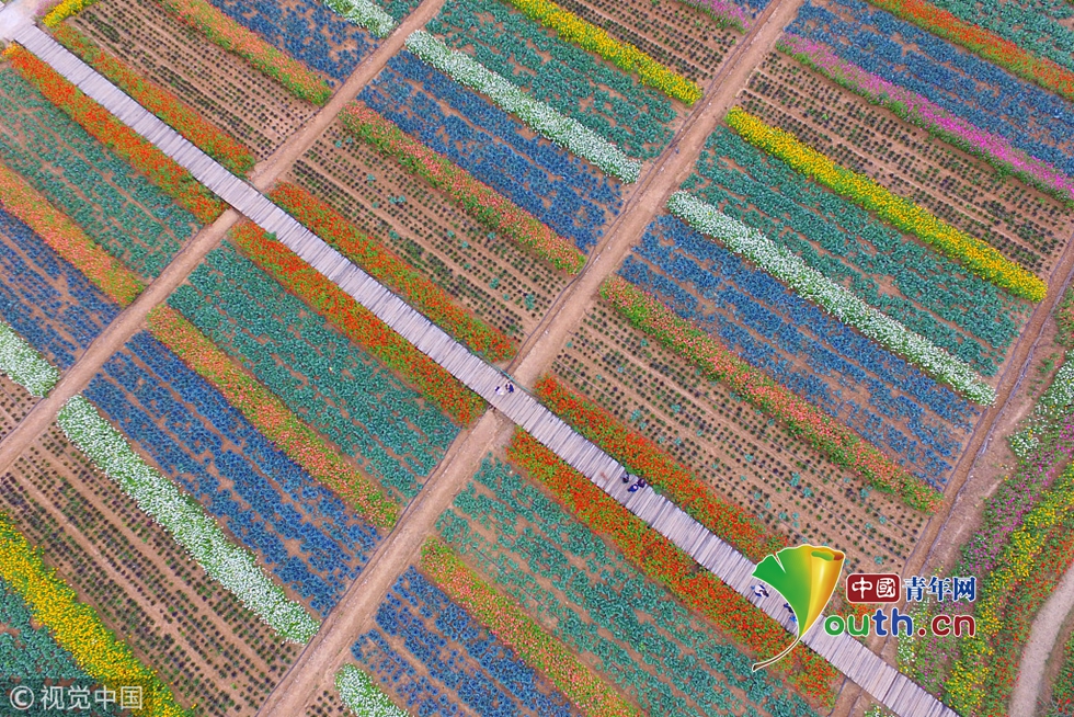 南京50萬(wàn)株百日菊齊綻放 宛如彩虹落在田野中