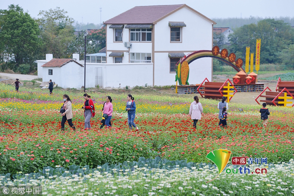 南京50萬(wàn)株百日菊齊綻放 宛如彩虹落在田野中