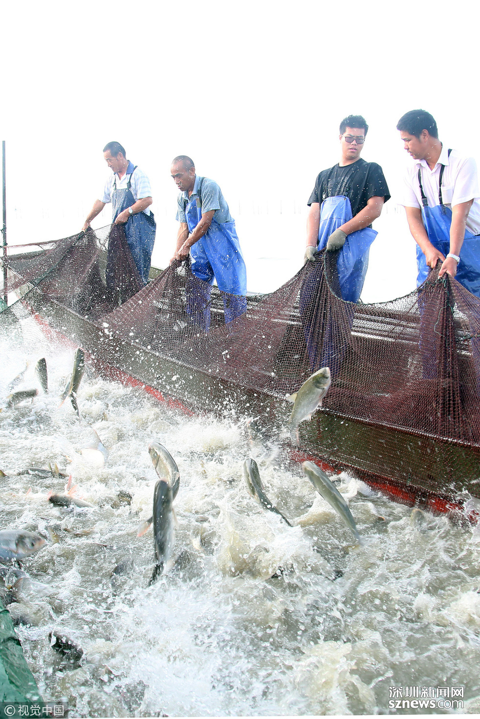 2018年6月26日,江蘇省常州市嘉澤鎮(zhèn)捕撈村的漁民組織夏季捕撈,一網(wǎng)魚達五萬余斤,以鰱魚為主,供應(yīng)市場需求。夏捕的魚價較平時有所上漲,漁民粗略估計可增收上萬余元。