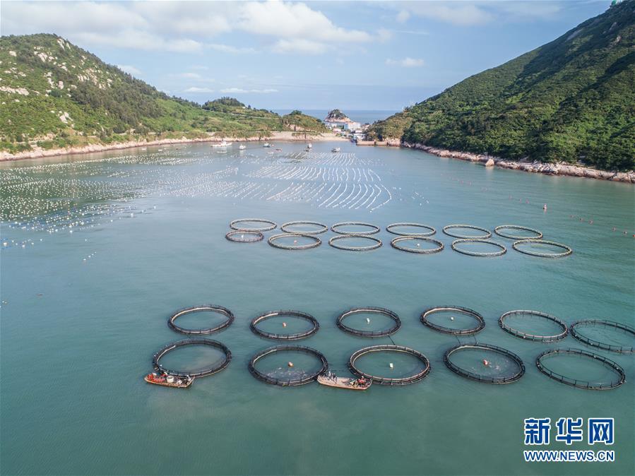 8月18日,漁船在南麂島馬祖岙海域的“海上牧場”大黃魚養(yǎng)殖區(qū)內(nèi)喂食(無人機(jī)拍攝)。南麂島位于浙江東南海域,水質(zhì)好,水溫、鹽度都適合大黃魚等養(yǎng)殖魚類的生長繁殖,因此當(dāng)?shù)氐乃a(chǎn)品也一直保持了較高的品質(zhì)和口碑。進(jìn)入8月,浙江省溫州市平陽縣南麂鎮(zhèn)海域上大片的大黃魚、貽貝等特色海產(chǎn)品養(yǎng)殖區(qū)域迎來豐收季節(jié),養(yǎng)殖戶們駕駛漁船在養(yǎng)殖區(qū)海域進(jìn)行打撈收獲,在碧海藍(lán)天下構(gòu)成了一幅“海上牧場”的美麗豐收景象。近年來,南麂鎮(zhèn)政府引導(dǎo)漁民養(yǎng)殖戶充分發(fā)揮“靠海吃?!钡馁Y源優(yōu)勢,大力發(fā)展海洋養(yǎng)殖經(jīng)濟(jì)和海島旅游經(jīng)濟(jì),實現(xiàn)了南麂由“生態(tài)美”向“產(chǎn)業(yè)美”,“產(chǎn)業(yè)美”向“經(jīng)濟(jì)美”的轉(zhuǎn)變。同時該鎮(zhèn)堅持以大黃魚、貽貝等為特色產(chǎn)業(yè)支撐,精準(zhǔn)發(fā)展高效海洋養(yǎng)殖業(yè),重點培養(yǎng)一批新型職業(yè)漁民,依靠專業(yè)技術(shù)支持,實現(xiàn)深海仿生養(yǎng)殖,讓好生態(tài)造就好品質(zhì),重點打造南麂養(yǎng)殖品牌,組建營銷網(wǎng)絡(luò),拓展特色海產(chǎn)品市場。新華社記者 徐昱攝