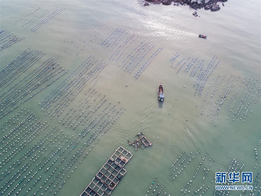 8月19日,空中俯瞰南麂島海域內(nèi)的“海上牧場(chǎng)”養(yǎng)殖區(qū)(無(wú)人機(jī)拍攝)。進(jìn)入8月,浙江省溫州市平陽(yáng)縣南麂鎮(zhèn)海域上大片的大黃魚(yú)、貽貝等特色海產(chǎn)品養(yǎng)殖區(qū)域迎來(lái)豐收季節(jié),養(yǎng)殖戶們駕駛漁船在養(yǎng)殖區(qū)海域進(jìn)行打撈收獲,在碧海藍(lán)天下構(gòu)成了一幅“海上牧場(chǎng)”的美麗豐收景象。近年來(lái),南麂鎮(zhèn)政府引導(dǎo)漁民養(yǎng)殖戶充分發(fā)揮“靠海吃?!钡馁Y源優(yōu)勢(shì),大力發(fā)展海洋養(yǎng)殖經(jīng)濟(jì)和海島旅游經(jīng)濟(jì),實(shí)現(xiàn)了南麂由“生態(tài)美”向“產(chǎn)業(yè)美”,“產(chǎn)業(yè)美”向“經(jīng)濟(jì)美”的轉(zhuǎn)變。同時(shí)該鎮(zhèn)堅(jiān)持以大黃魚(yú)、貽貝等為特色產(chǎn)業(yè)支撐,精準(zhǔn)發(fā)展高效海洋養(yǎng)殖業(yè),重點(diǎn)培養(yǎng)一批新型職業(yè)漁民,依靠專業(yè)技術(shù)支持,實(shí)現(xiàn)深海仿生養(yǎng)殖,讓好生態(tài)造就好品質(zhì),重點(diǎn)打造南麂養(yǎng)殖品牌,組建營(yíng)銷(xiāo)網(wǎng)絡(luò),拓展特色海產(chǎn)品市場(chǎng)。新華社記者 徐昱攝