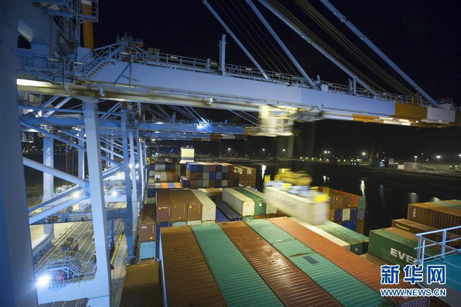 10月15日晚,吊車在比利時澤布呂赫港集裝箱碼頭進(jìn)行裝卸作業(yè)。 新華社記者 葉平凡 攝