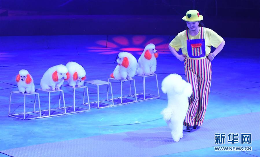 10月16日,馬戲團演員在濮陽國際雜技藝術(shù)節(jié)上表演馬戲《小狗當(dāng)家》。