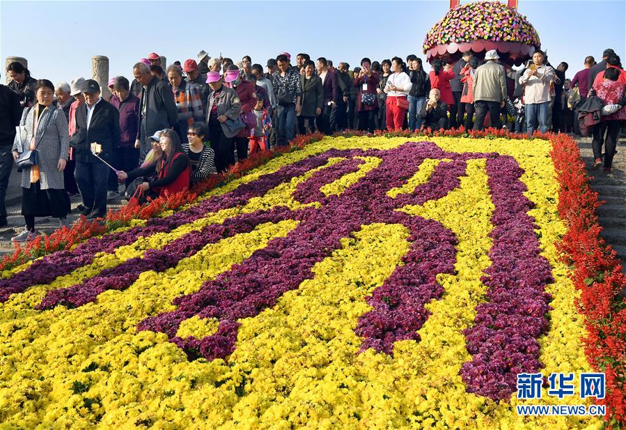 10月17日,游客在開封龍亭公園欣賞菊花。重陽(yáng)時(shí)節(jié),各色菊花競(jìng)相綻放,把古都開封裝點(diǎn)得分外秀美,吸引眾多游客前來(lái)觀賞游玩。 新華社記者 李安 攝