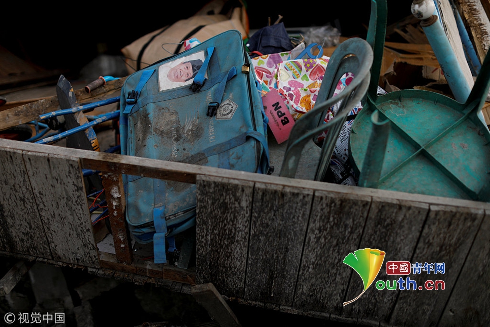 當(dāng)?shù)貢r間2018年10月11日,印尼帕盧,15歲的Ikhmal Yudanto站在他母親的汽車上,汽車在地震中被嚴(yán)重毀壞。