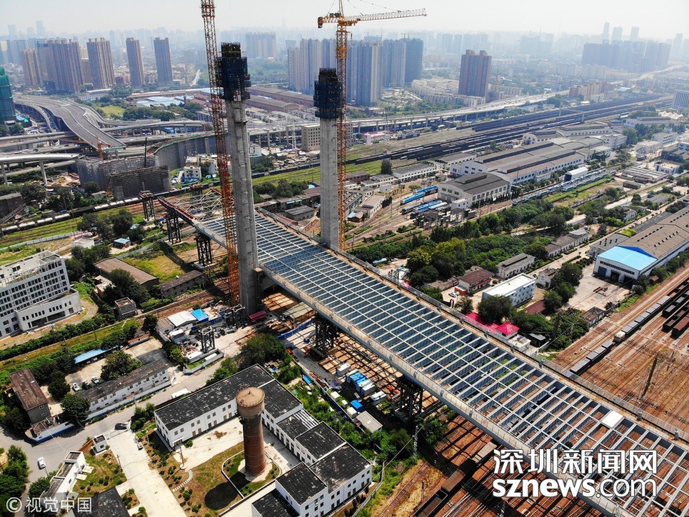 深圳新聞網(wǎng)訊 2018年8月19日,鄭州,跨亞洲最大火車站編組站的農(nóng)業(yè)路高架鄭北大橋工程開始最后一輪頂推,長度為160米,約占總頂推長度的1/3,頂推重量達(dá)到9000噸。