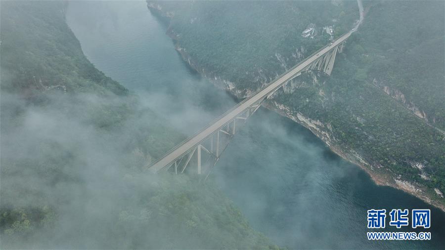 10月18日無人機航拍的江界河大橋。 新華社記者歐東衢攝