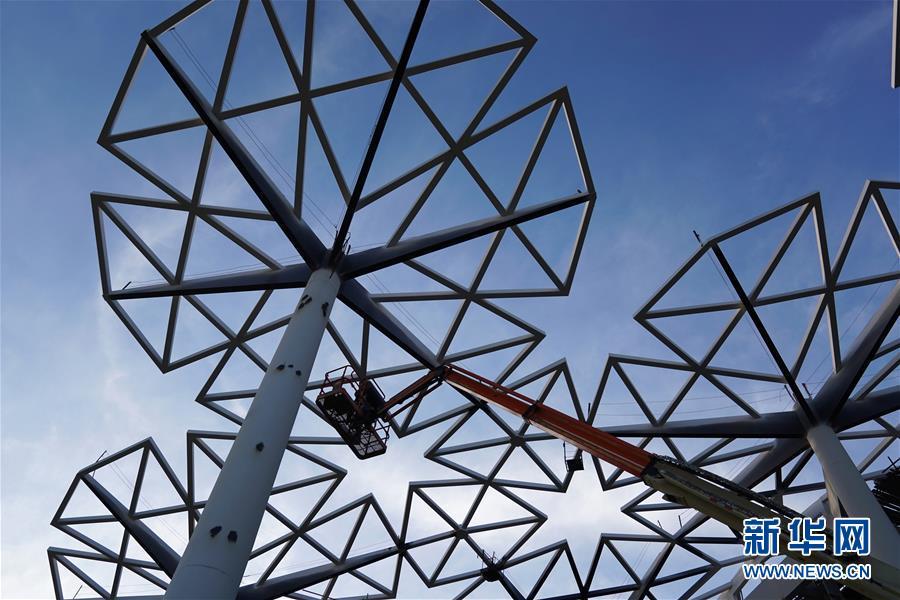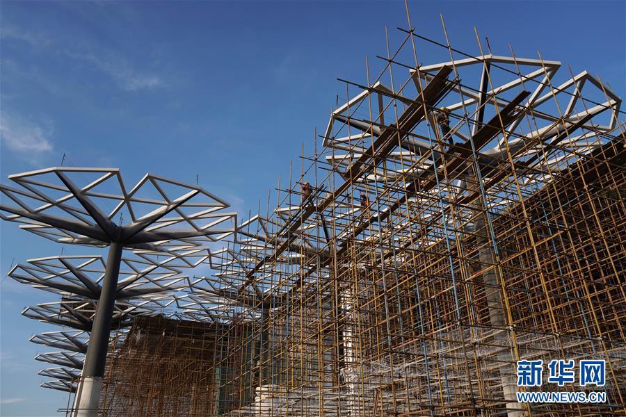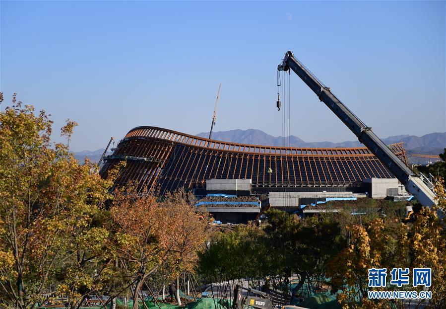 10月18日拍攝的建設(shè)中的北京世園會國際館。 新華社記者 鞠煥宗 攝