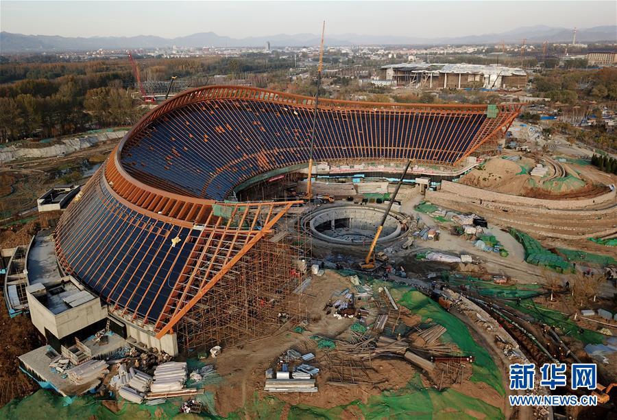 10月18日拍攝的建設(shè)中的北京世園會國際館。新華社記者 鞠煥宗 攝