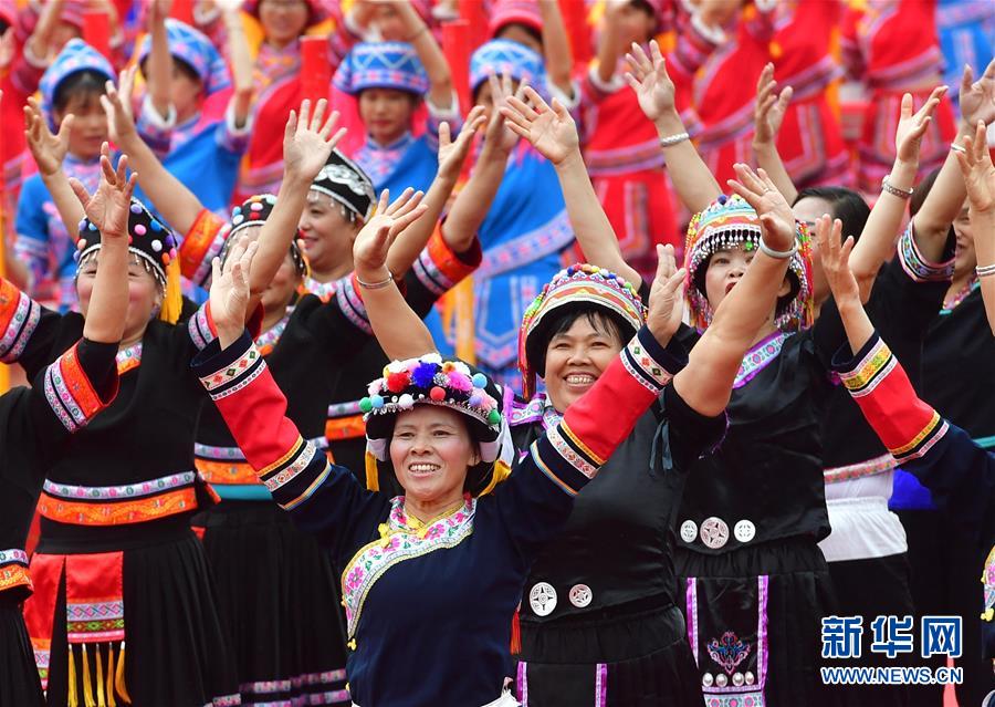 10月20日,各族同胞在廣西大化瑤族自治縣江濱文化廣場(chǎng)表演節(jié)目,慶??h慶?!⌒氯A社記者黃孝邦攝