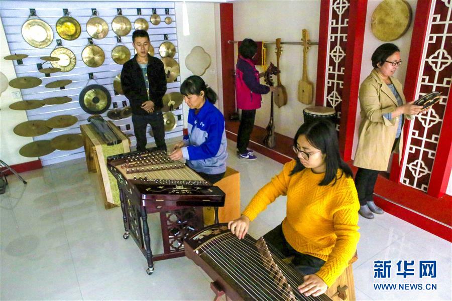 10月20日,客商在河北省饒陽(yáng)縣一家民族樂器廠挑選民族樂器。