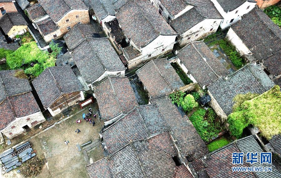 游客在廣西富川瑤族自治縣朝東鎮(zhèn)秀水村游玩(10月19日無人機(jī)拍攝)。這個位于瀟賀古道東南側(cè)的村落,至今仍保留著包括連片明清民居在內(nèi)的大量古建筑。