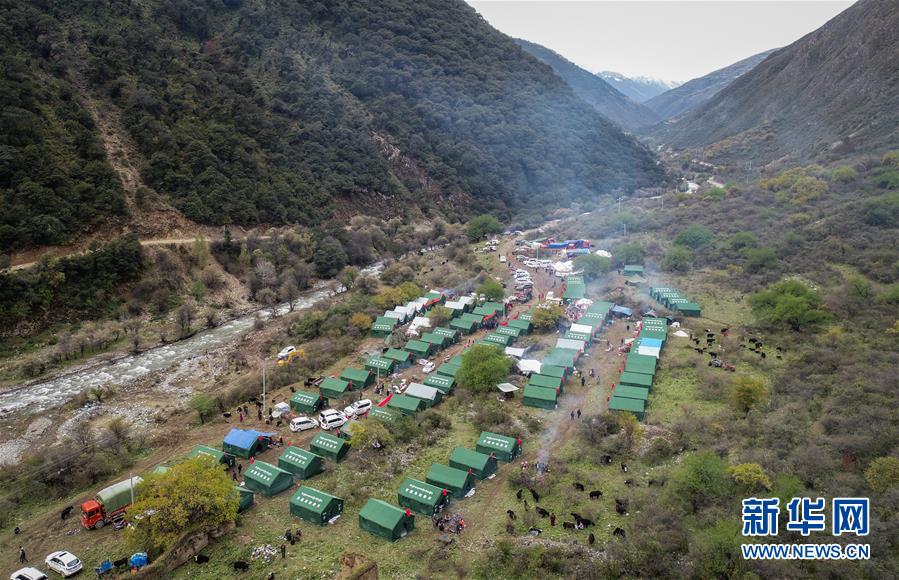 10月19日拍攝的在米林縣派鎮(zhèn)達林村搭建的安置點。 記者從西藏自治區(qū)林芝加拉村雅魯藏布江堰塞湖災情應急搶險工作第二場新聞發(fā)布會上獲悉,19日13時30分,雅魯藏布江米林縣堰塞體上游水位超過堰塞體,開始自然過流,上游水位正在緩慢下降。目前,各項搶險救援工作正在有序開展。 新華社記者 普布扎西 攝
