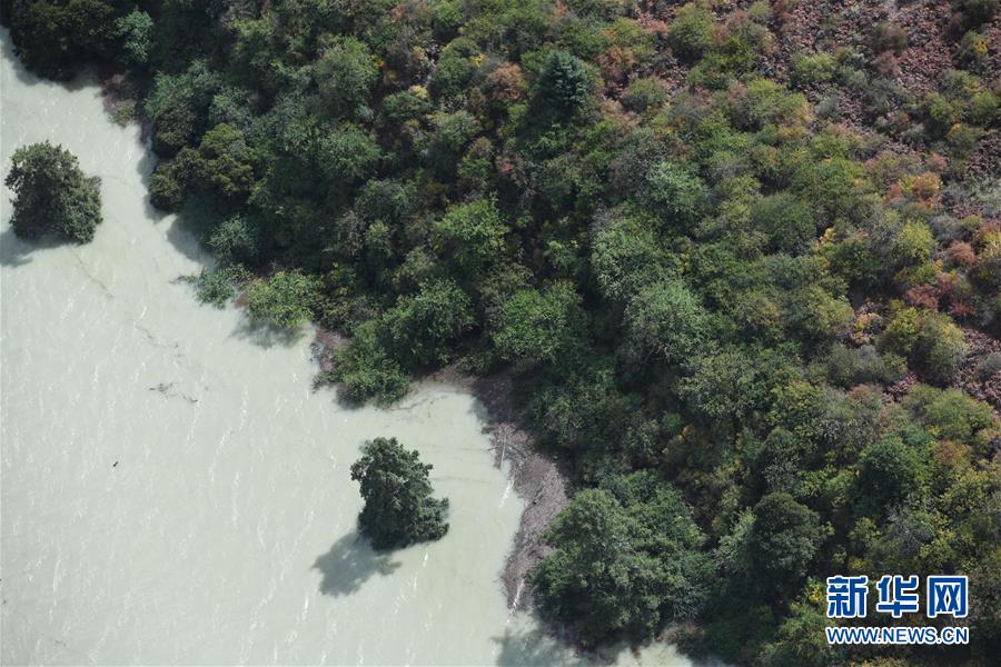 洪峰過境后的西藏雅魯藏布江墨脫段局部畫面(10月20日無人機拍攝)。  新華社記者劉東君攝