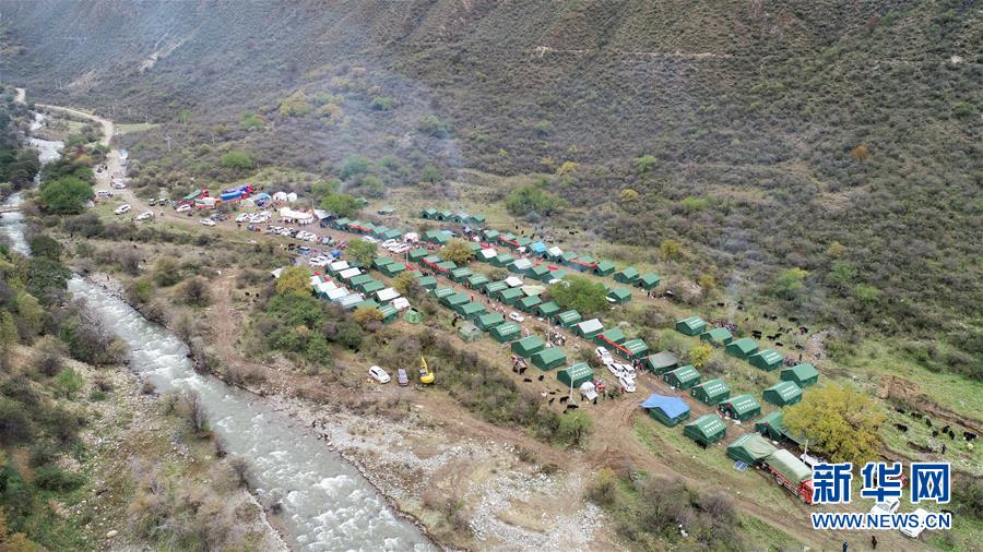 10月19日,救援人員在米林縣派鎮(zhèn)尼定村搭建安置點。 記者從西藏自治區(qū)林芝加拉村雅魯藏布江堰塞湖災情應急搶險工作第二場新聞發(fā)布會上獲悉,19日13時30分,雅魯藏布江米林縣堰塞體上游水位超過堰塞體,開始自然過流,上游水位正在緩慢下降。目前,各項搶險救援工作正在有序開展。 新華社記者 覺果 攝