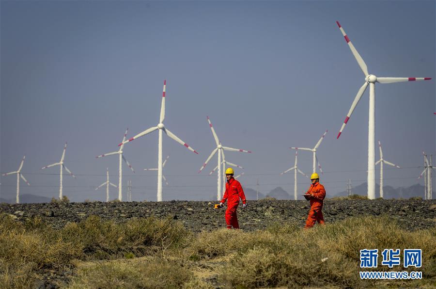在新疆烏魯木齊達坂城風力發(fā)電場,工作人員查看風力發(fā)電設備(2018年9月18日攝)。今年以來,新疆穩(wěn)步推進新能源參與“疆電外送”、擴大與燃煤自備電廠調(diào)峰替代交易等多種電力交易方式,著力破解“綠色電力”上網(wǎng)難題,新能源發(fā)電量同比增加近13個百分點,而棄電量和棄電比實現(xiàn)“雙降”,綠色發(fā)展理念進一步落實。新疆是我國重要的能源供應和儲備基地,風能、太陽能儲量豐富。近年來,新疆新能源裝機總量突破2700萬千瓦,規(guī)模和占比均居全國前列。新華社記者 趙戈 攝