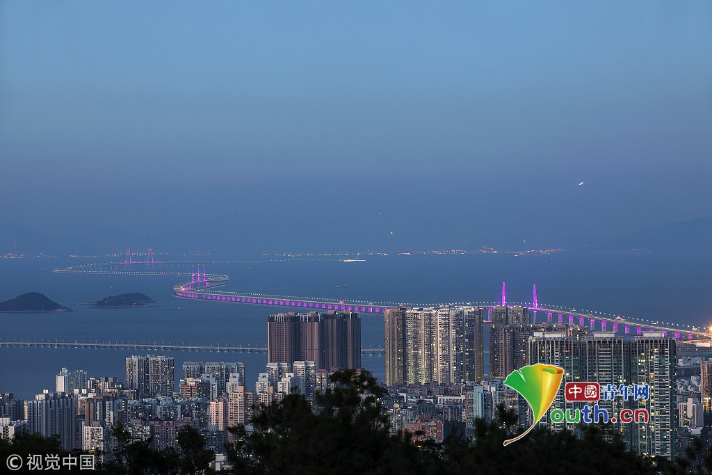 大橋全長55公里,集橋、島、隧于一身,其中主體工程海中橋隧長35.578公里,有3座斜拉橋,橋體全部采用鋼結(jié)構(gòu),相當(dāng)于64座埃菲爾鐵塔。