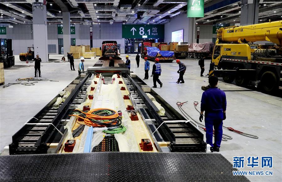 10月22日,“金牛座”龍門銑床床身(前)等待裝運(yùn)。 當(dāng)日,來自德國的首屆進(jìn)口博覽會最大展品——“金牛座”龍門銑床完成初步組裝,將運(yùn)往國家會展中心(上海)3號館進(jìn)行最后的安裝施工。這是德國瓦德里??票す狙邪l(fā)的機(jī)床設(shè)備,高約8米,占地面積約200平方米,將在智能及高端裝備區(qū)進(jìn)行展出。 新華社記者方喆攝
