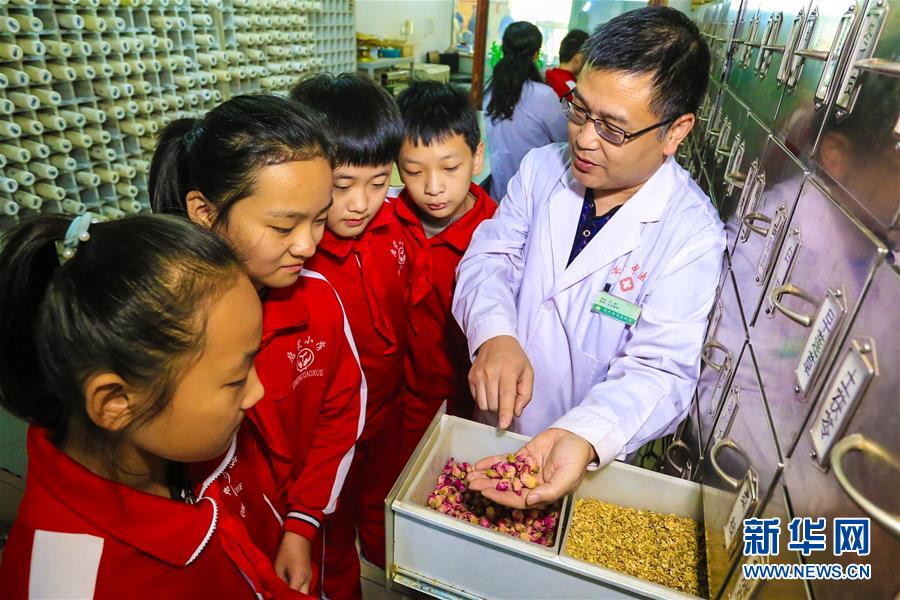 10月22日,安平縣啟蒙小學(xué)學(xué)生在安平縣中醫(yī)院的中藥房識(shí)別各類中藥材。 當(dāng)日是世界傳統(tǒng)醫(yī)藥日,河北省安平縣啟蒙小學(xué)組織學(xué)生走進(jìn)安平縣中醫(yī)院,通過參觀中藥房、認(rèn)識(shí)常見中藥、感受中藥加工等方式,向小學(xué)生普及中醫(yī)藥知識(shí),弘揚(yáng)傳統(tǒng)中醫(yī)藥文化。 新華社記者李曉果攝