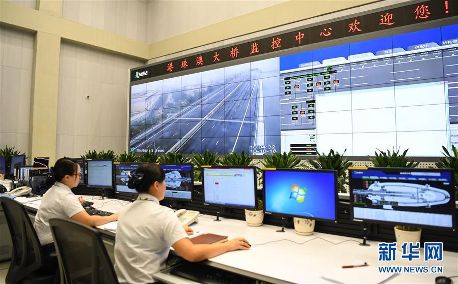 港珠澳大橋監(jiān)控中心(2018年10月10日攝)。 金秋十月,伶仃洋上海天一色、潮聲陣陣,依傍著這片中國南海水域的城市群迎來深具意義的一天。 10月23日上午,港珠澳大橋開通儀式在廣東珠海舉行,中共中央總書記、國家主席、中央軍委主席習(xí)近平出席儀式,宣布大橋正式開通。 碧波之上,一橋飛架香港、澳門、珠海三地,以氣貫長虹的“中國跨度”,飛越滄海百年的歷史風(fēng)云,展現(xiàn)當(dāng)代中國的雄健風(fēng)采。 新華社記者鄧華攝