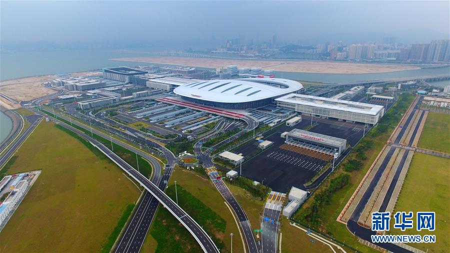 10月24日無(wú)人機(jī)拍攝的港珠澳大橋珠海公路口岸。當(dāng)日9時(shí),港珠澳大橋正式通車。 新華社記者梁旭攝