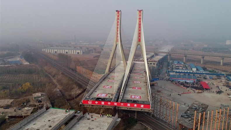 河北唐山:斜拉轉(zhuǎn)體橋轉(zhuǎn)體成功