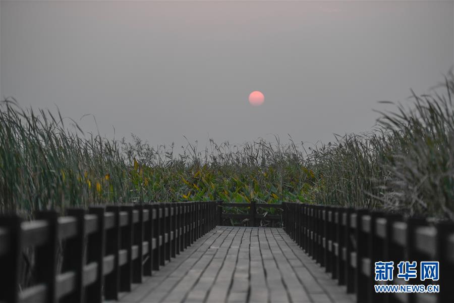 杭州灣國家濕地公園一景(10月24日攝)。 時值深秋,位于浙江寧波的杭州灣國家濕地公園在落日余暉下呈現出一幅美麗的畫卷。 新華社記者 黃宗治 攝
