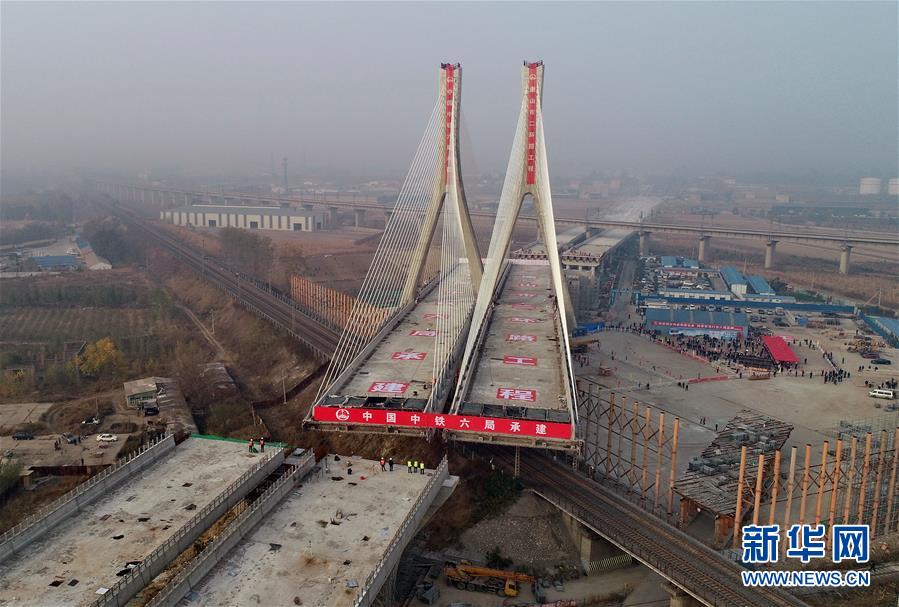 鄭萬高鐵1.65萬噸大橋轉(zhuǎn)體成功