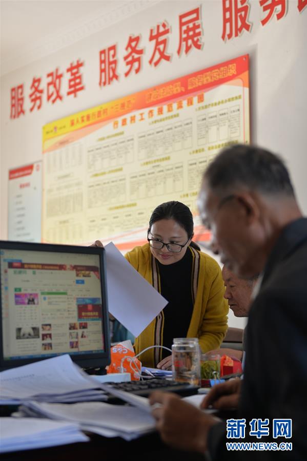 開弦弓村婦女主任周春燕(左一)在村部和同事們一起處理村務(wù)(10月23日攝)?!?0后”周春燕是土生土長的開弦弓村村民,大學(xué)畢業(yè)后回村工作,每天活躍在村里的大街小巷。 新華社記者 尹棟遜攝