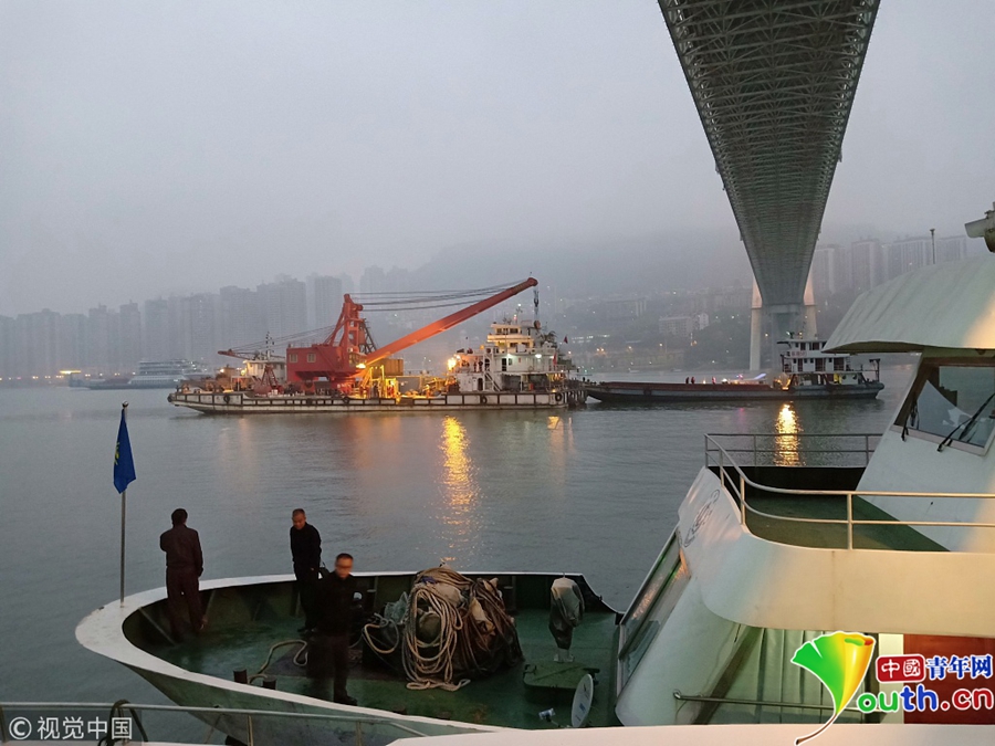 2018年10月30日,重慶,救援現(xiàn)場(chǎng)。10月28日上午10時(shí)8分,一輛公交車在重慶市萬(wàn)州區(qū)長(zhǎng)江二橋墜入江中。目前打撈工作有何進(jìn)展?記者采訪了交通運(yùn)輸部上海打撈局救撈工程船隊(duì)隊(duì)長(zhǎng)周東榮。