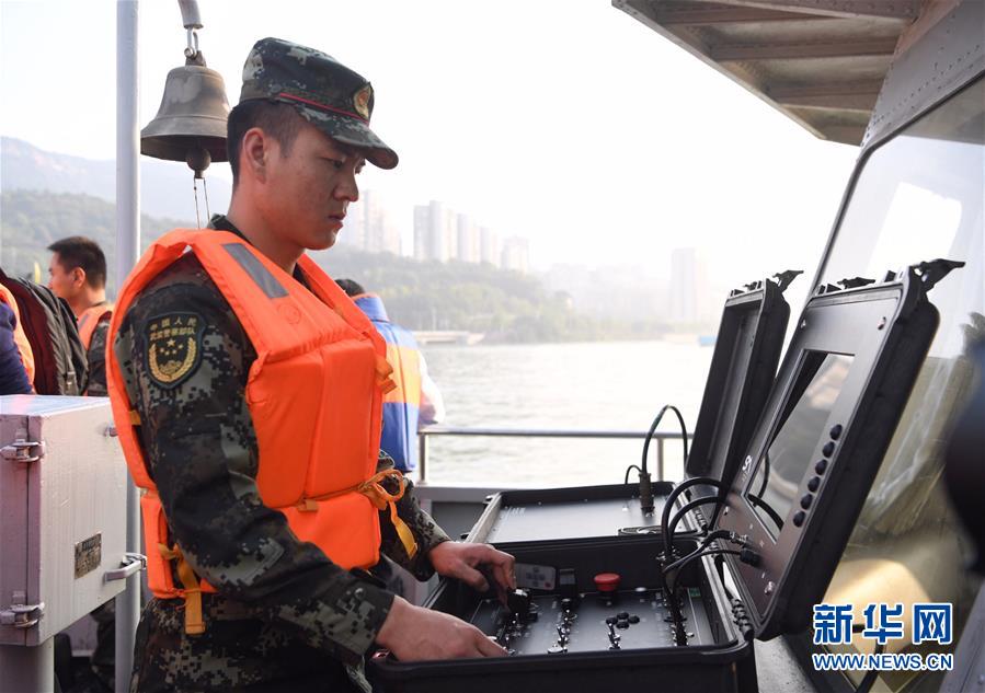 2018年10月29日,武警重慶總隊(duì)船艇支隊(duì)官兵使用水下機(jī)器人搜尋。