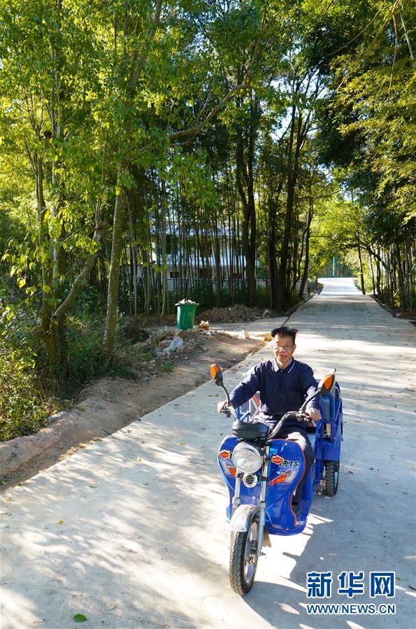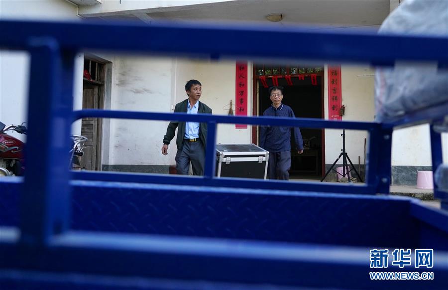 10月30日,曾紀(jì)連在寬田鄉(xiāng)山下村為當(dāng)?shù)匕傩辗庞畴娪啊P氯A社記者 胡晨歡攝