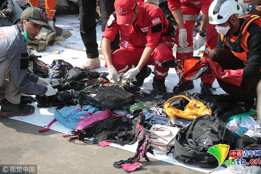 當(dāng)?shù)貢r間2018年10月30日,印尼雅加達(dá), 印尼搜救隊持續(xù)打撈出獅航墜毀客機遇難者遺物和飛機殘骸。一架載有189人的印尼獅子航空(Lion Air Air)客機在從首都雅加達(dá)飛往邦加檳港過程中墜海。機上載有181名乘客,6名機組人員和2名飛行員,乘客中包括20名官員。圖片作者:ADEK BERRY