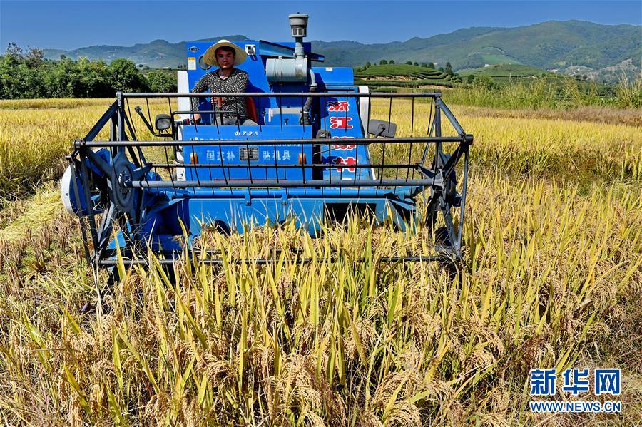 10月31日,武夷山市興田鎮(zhèn)南岸村農(nóng)民在田間收割稻谷。 新華社記者 張國俊 攝