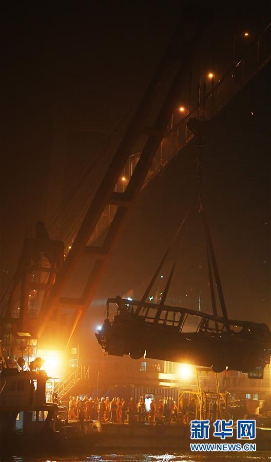 10月31日23時30分左右,記者在重慶萬州江面的打撈現(xiàn)場看到,隨著浮吊船的吊索緩緩提升,墜江的公交車被打撈出水面。 10月28日10時8分,重慶市萬州區(qū)一輛公交車行駛至長江二橋時,與一輛小轎車相撞后墜江。經(jīng)公安機(jī)關(guān)初步核實(shí),失聯(lián)人員15人。