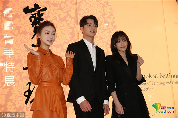 10月31日,臺(tái)北,《延禧攻略》主要演員秦嵐、吳謹(jǐn)言、許凱參觀臺(tái)北故宮。吳謹(jǐn)言梳高馬尾辮,元?dú)鉂M滿比心超甜美。秦嵐穿黑色長(zhǎng)裙氣質(zhì)非凡,親切揮手顯優(yōu)雅,可以說(shuō)是“富察皇后”本人了,與吳謹(jǐn)言牽手秀友誼惹人羨慕。
