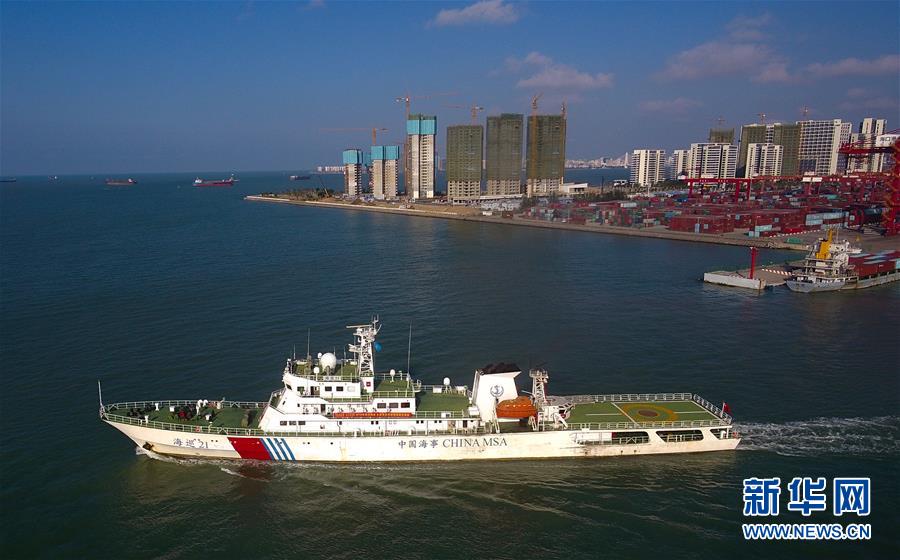 11月3日,“海巡21”輪駛出港口。當日,隨著“海巡21”輪緩緩駛離??诤J卤O(jiān)管基地碼頭,由瓊桂粵海事部門共同開展的瓊州海峽、北部灣及環(huán)海南島水域跨轄區(qū)聯(lián)合巡航執(zhí)法活動揭開序幕。新華社記者楊冠宇攝