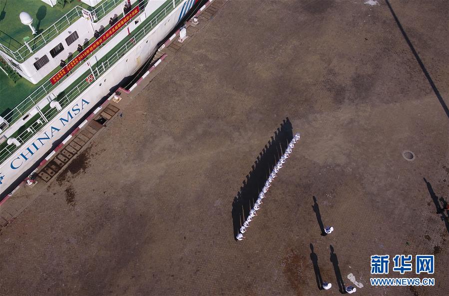11月3日,海事執(zhí)法人員準備登上“海巡21”輪(無人機拍攝)。當日,隨著“海巡21”輪緩緩駛離??诤J卤O(jiān)管基地碼頭,由瓊桂粵海事部門共同開展的瓊州海峽、北部灣及環(huán)海南島水域跨轄區(qū)聯(lián)合巡航執(zhí)法活動揭開序幕。新華社記者楊冠宇攝