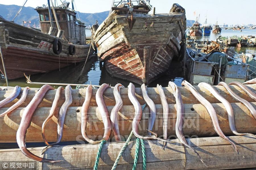 金秋時(shí)節(jié),江蘇連云港市沿海秋捕迎來(lái)豐收,漁民們將捕獲的鯧魚(yú)、鰻魚(yú)、小黃魚(yú)、烏賊等經(jīng)過(guò)腌制、晾曬加工成魚(yú)干,海島處處呈現(xiàn)出一派豐收景象。
