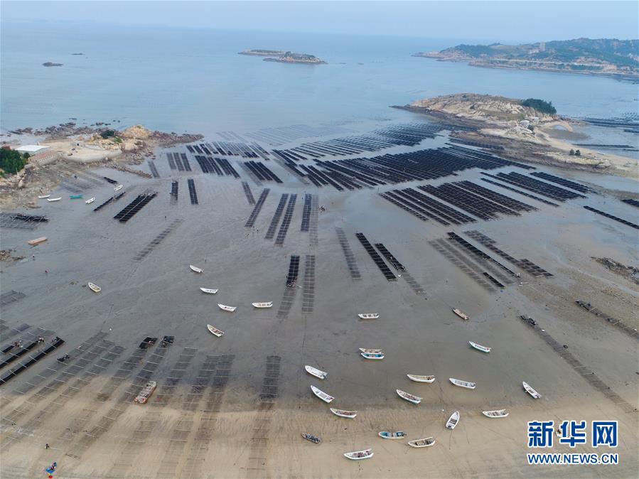 10月24日,福建莆田蔣山村村民在收獲紫菜。 新華社記者姜克紅 攝
