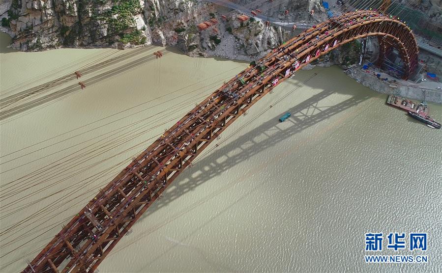 9月28日拍攝的川藏鐵路拉林段重點(diǎn)標(biāo)志性工程藏木特大橋。 當(dāng)日,隨著最后一節(jié)鋼管拱的對(duì)位和鎖定完畢,川藏鐵路拉林段藏木特大橋成功合龍,標(biāo)志著大橋主體結(jié)構(gòu)施工取得了關(guān)鍵性勝利。藏木特大橋由中國中鐵廣州局集團(tuán)承建,拱高112米,橋橫跨雅魯藏布江峽谷,水深66米。 新華社記者普布扎西攝