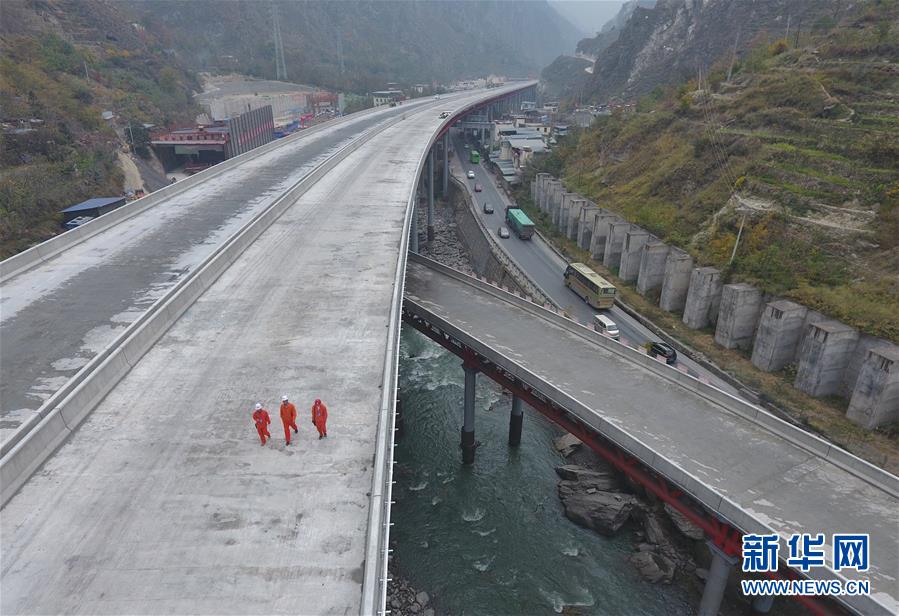 11月3日,安全管理員在克枯大橋上檢查。 當(dāng)日,位于四川省阿壩藏族羌族自治州的汶(川)馬(爾康)高速的控制性工程克枯大橋合龍。 新華社記者 劉坤 攝