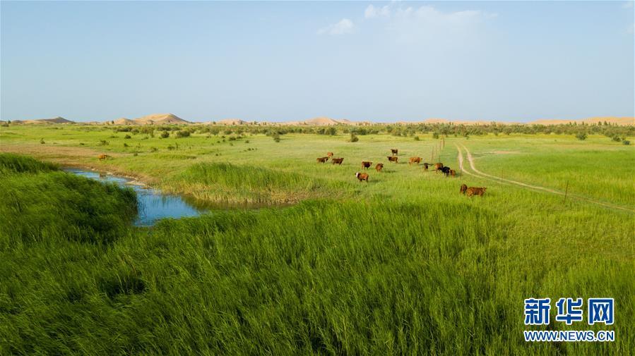 內(nèi)蒙古鄂爾多斯市恩格貝生態(tài)旅游區(qū)(6月8日無人機(jī)拍攝)。 新華社記者彭源攝