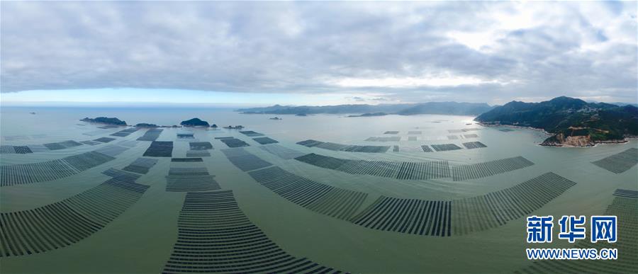 這是11月4日無人機(jī)拍攝的霞浦縣長春鎮(zhèn)的紫菜種植區(qū)(拼接照片)。 近日,福建省霞浦縣沿海6萬畝紫菜迎來收獲季節(jié),漁民們出海收獲紫菜,海上田園一派繁忙豐收景象。   新華社記者 姜克紅 攝