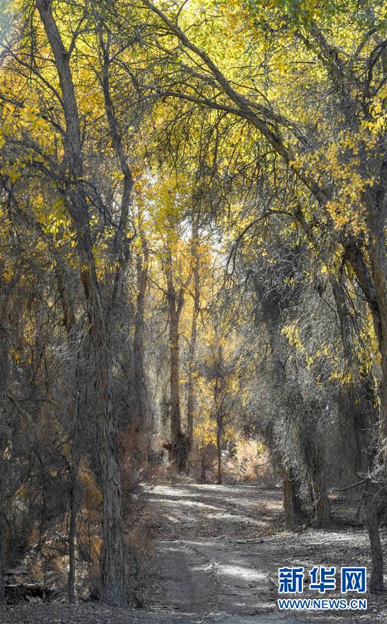 新疆輪臺(tái)縣胡楊林深處的一條小路(10月25日攝)。 10月中下旬,靜靜的塔里木河中下游一片金黃。胡楊深處,條條小路蜿蜒綿長(zhǎng)通向遠(yuǎn)方,引人入勝。 塔里木河是中國(guó)最長(zhǎng)的內(nèi)陸河,這一區(qū)域原始胡楊林分布較為集中。隨著塔里木河連續(xù)19次向下游生態(tài)輸水,為胡楊林“解渴”,塔河兩岸生態(tài)得到明顯改善,沙地面積逐年減少。 新華社記者趙戈攝