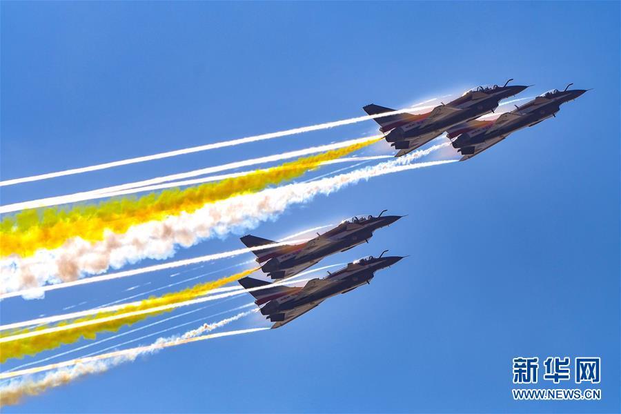 11月6日,中國空軍八一飛行表演隊在航展現(xiàn)場進(jìn)行飛行表演。當(dāng)日,第十二屆中國國際航空航天博覽會在珠海開幕。 新華社記者鄧華攝