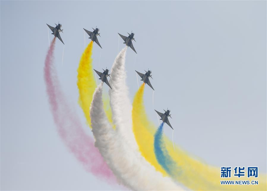11月6日,中國(guó)空軍八一飛行表演隊(duì)在航展現(xiàn)場(chǎng)進(jìn)行飛行表演。當(dāng)日,第十二屆中國(guó)國(guó)際航空航天博覽會(huì)在珠海開(kāi)幕。 新華社記者鄧華攝